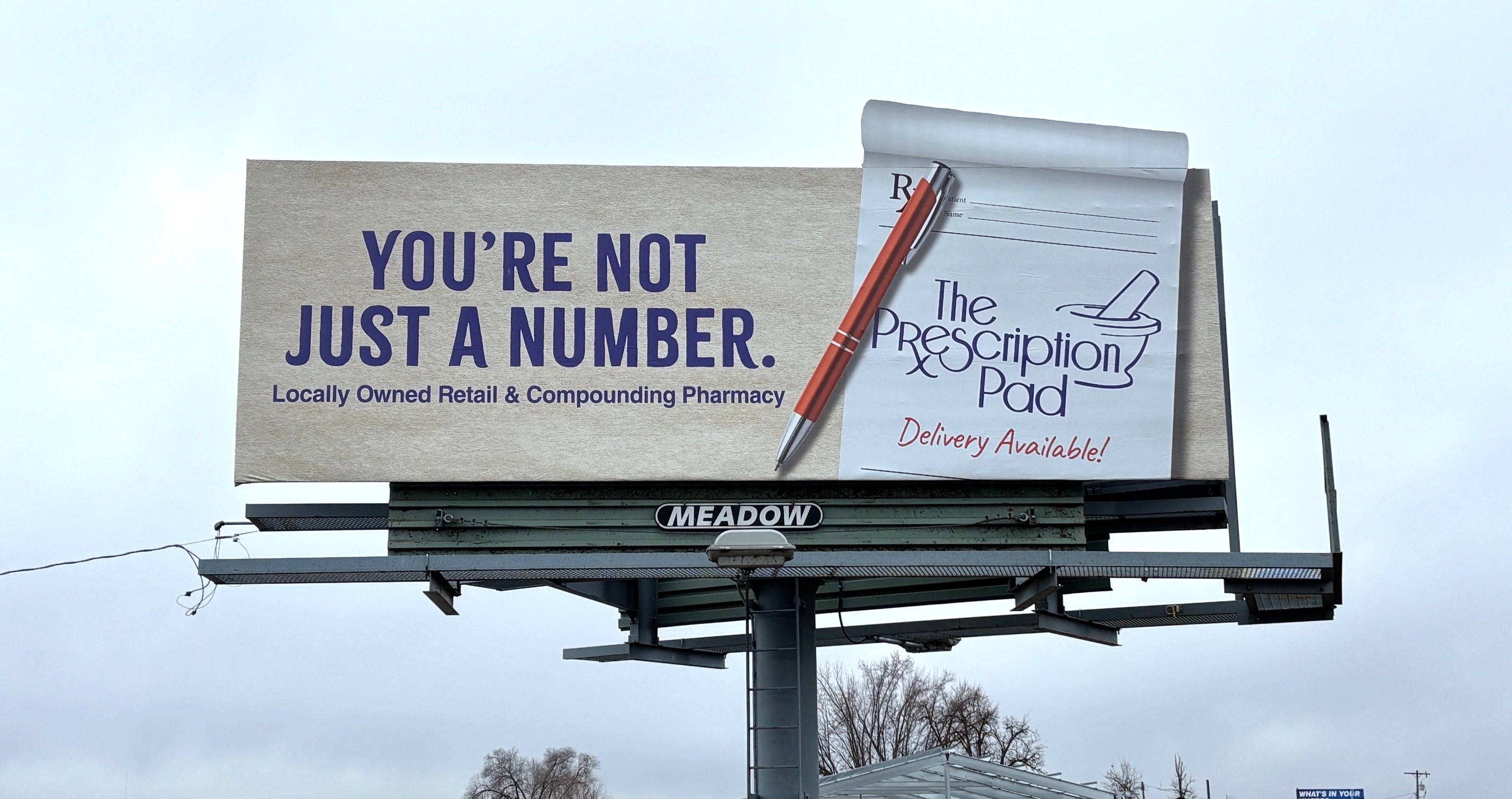 3. The Prescription Pad: Using a visual element that helps the viewer remember the name of the business was a stroke of genius from our creative team! In this case, they made a Prescription Pad the most dominant aspect of the display for a business called The Prescription Pad. That, combined with the bright, contrasting colors and simple, bold copy, makes this billboard a winner.