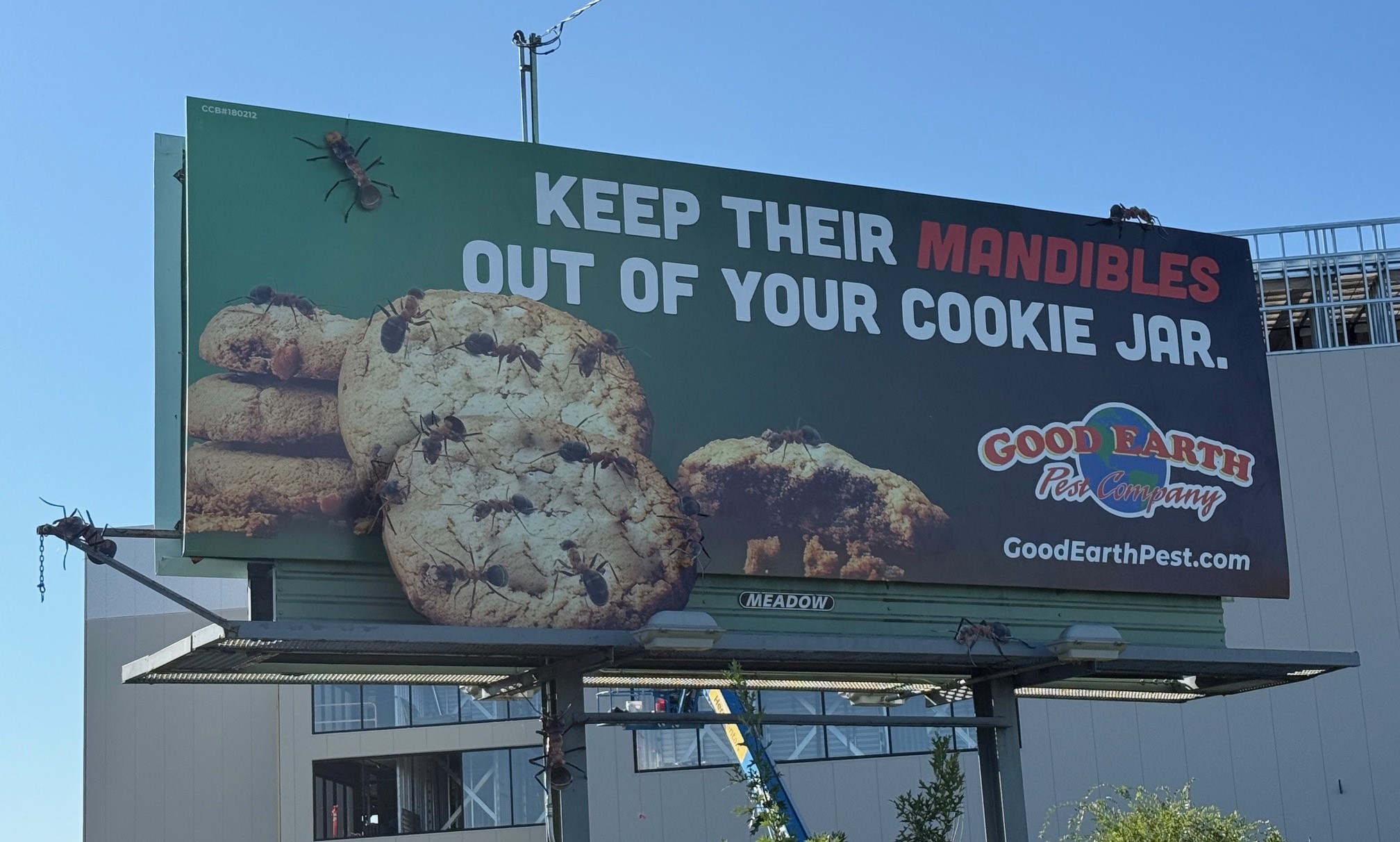 This piece of artwork checks every box! It is a dynamic piece with little ants crawling all over the billboard, including on the monopole and walkway. There is a cookie on the bottom of the panel that is a pop-out with more 3D ants, all culminating in an incredibly fun, effective, and memorable display!