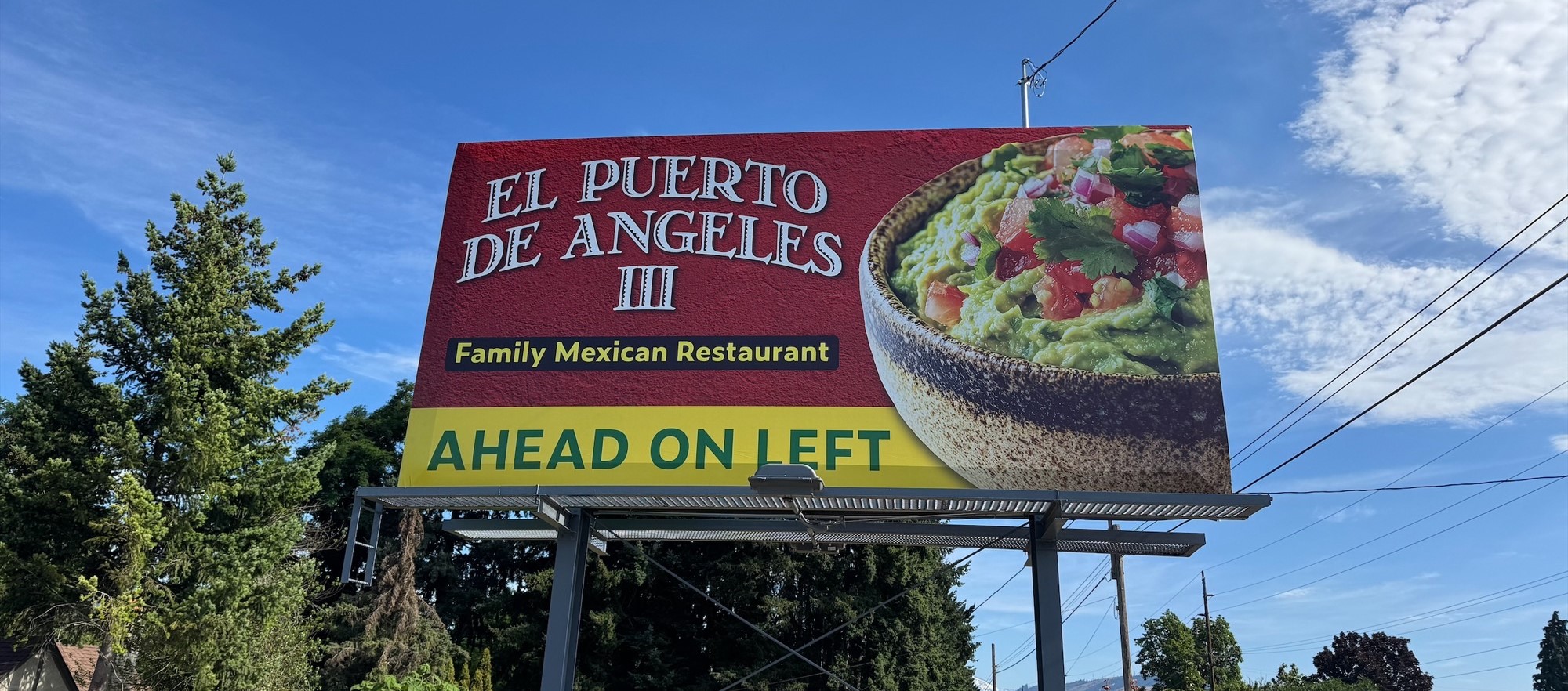 When do you not need a giant crab extension? It would improve any design! This extension was particularly well executed by our crew because of the cut-out section between the bottom of the crab and the top of the billboard. Additionally, most of the billboard is taken up with imagery, not text, as every good billboard should be!